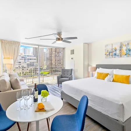 Appartamento Newly Renovated Ilikai Marina Studio - Near Beach! Honolulu, di 42 m^2, si trova nel quartiere Waikiki e offre un rapido accesso al Centro Commerciale Ala Moana Center, che si trova a soli 7 minuti a piedi. L'appartamento dispone di Wi-Fi in tutta la struttura.